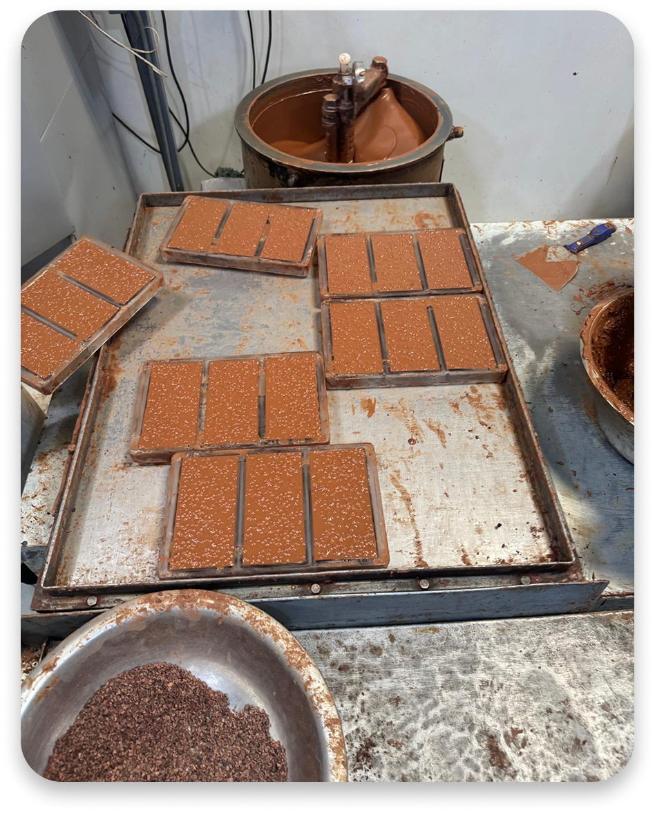 Finally, we blend in organic cacao butter — the precious, silky fat of the bean. It gives our chocolate its smooth texture, melt-in-the-mouth feel, and delicate finish, making each bite a refined experience.